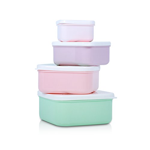 Dimensioni:1 - Contenitore grande: 12 x 12 x 5,5 cm 2 - Contenitore medio: 10,5 x 10,5 x 5,5 cm 3 - Contenitore medio: 9 x 9 x 4,5 cm 4 - Contenitore piccolo: 6,5 x 6,5 x 3,5 cm