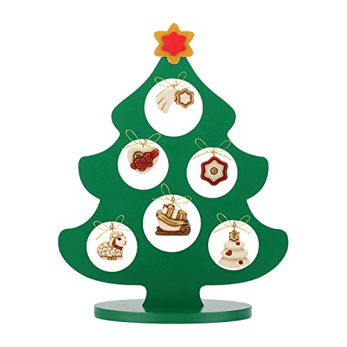 THUN ® - Albero di Natale in Legno con 6 Mini addobbi - Ceramica - h 41,5 cm - Linea I Classici