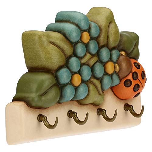 THUN - Appendichiavi 4 Ganci con Coccinella Portafortuna - Complementi d'Arredo, Living - Idea Regalo - Linea Country - Ceramica;