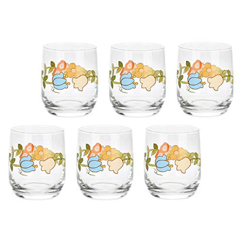 THUN - Set Bicchieri da 6 con Decorazione Floreale - Accessori Cucina - Linea Country - Vetro - 9 h cm