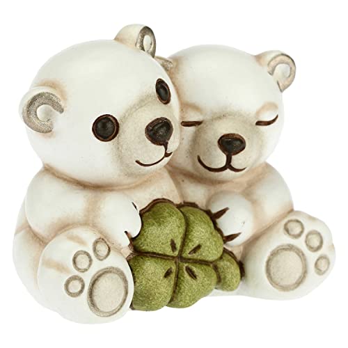 THUN - Mini Coppia Orsi Polari con Quadrifoglio Portafortuna - Ceramica - Linea Natale - Living, Arredare la Casa - 5,3x3,1x4,3 cm h