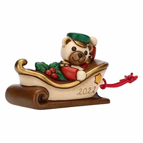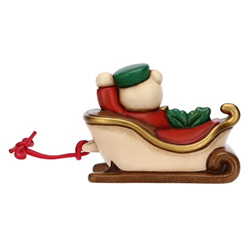 THUN - Natale 2022 - Slitta Componibile con Iconico Teddy Schiaccianoci Porta Regali in Ceramica Decorata a Mano, Versione Piccolo - Idea Regalo Natale 2022-10x6x7 cm h