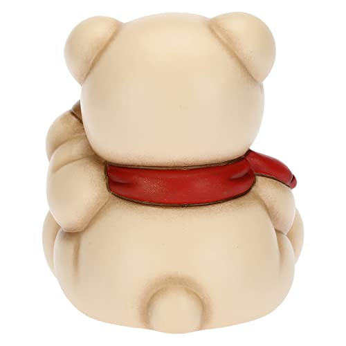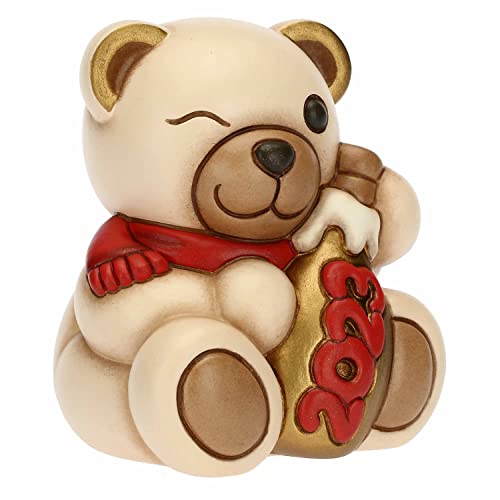 THUN - Natale 2022 - Soprammobile Teddy Buon Anno 2023 in Ceramica Decorata a Mano, Versione Rosso - Idea Regalo Natale 2022-6.8x6.6x7.7 cm h