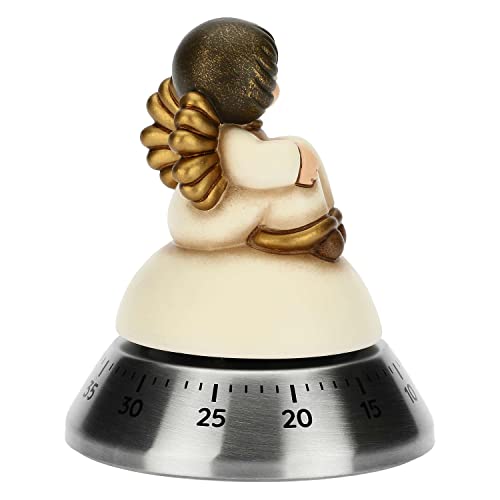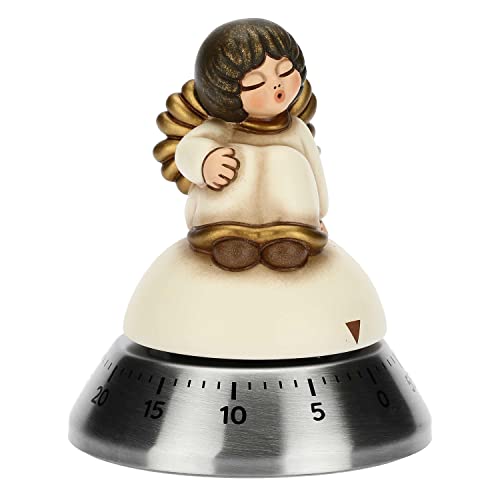 THUN - Natale 2022 - Timer da Cucina con Iconico Angelo Ceramica Decorata a Mano - Idea Regalo Natale 2022 - Timer in Acciaio Inossidabile - 8x8x9.5 cm h