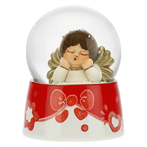 THUN - Palla di Vetro con Neve e Angelo - Accessori per la Casa da Collezionare - Formato Piccolo - Ceramica,Vetro - Ø 4,5 cm