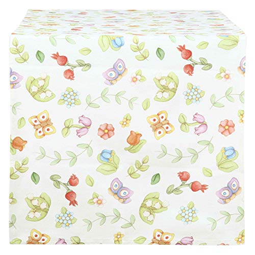 THUN - Runner da Tavola con Decoro di Fiori e Farfalle - Accessori Cucina - Linea Country - 100% Cotone - 48 x 150 cm