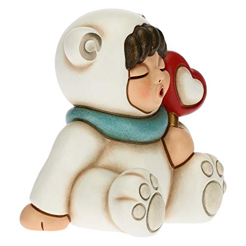 THUN - Soprammobile Bimba con Vestito da Orso Polare e Lecca Lecca - Accessori per la Casa da Collezionare - Linea Un Pensiero Felice - Formato Grande - Ceramica - 8,4 x 7 x 9 h cm