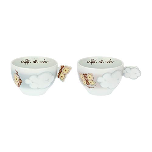 THUN ® - Set 2 Tazze Medie - Linea Pioggia di Colori - Porcellana - 160 ml - ø 9 cm