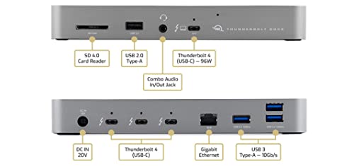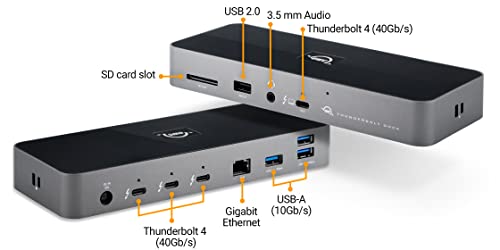 OWC Thunderbolt Dock - 4x Thunderbolt 4 (USB-C), 3x USB 3.2 Gen 2 Type-A fino a 10Gb/s (1250MB/s), compatibile USB 2.0/3.0, 1x porta USB 2.0, 1x Gigabit Ethernet, stereo da 3,5 mm Audio, 1x slot SD