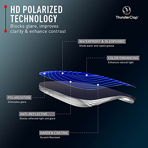 Resistente agli urti, ai graffi e agli urti, per una migliore visibilità, con rivestimento idrorepellente e resistente per proteggere da macchie e graffi. La tecnologia a pellicola polarizzata infusa evita la distorsione ottica e riduce l'affaticamento degli occhi, in modo da poter vedere meglio in ogni momento