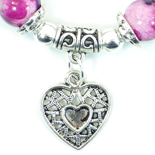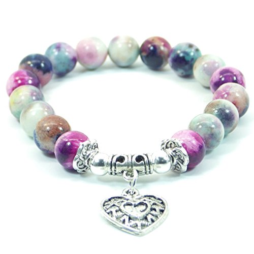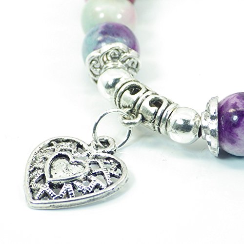 Thurcolas bella perla di giada di colore blu e viola con pendente in filigrana argentata a forma di cuore