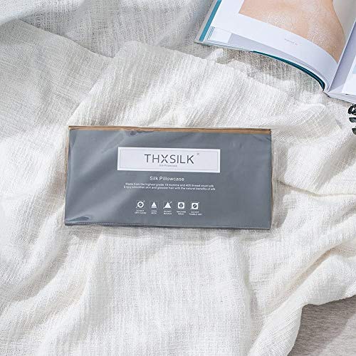 THXSILK 100% Seta Federa per Cuscino con Cerniera 19 Momme, 100% Seta, Grau, 40 x 80 cm