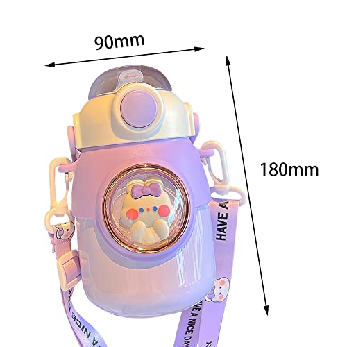 TIAASTAP Kawaii - Borraccia con paglia, graziosa borraccia in acciaio inox, estetica Kawaii, bottiglia d'acqua isolata a prova di perdite, per bevande calde e fredde (coniglio viola)