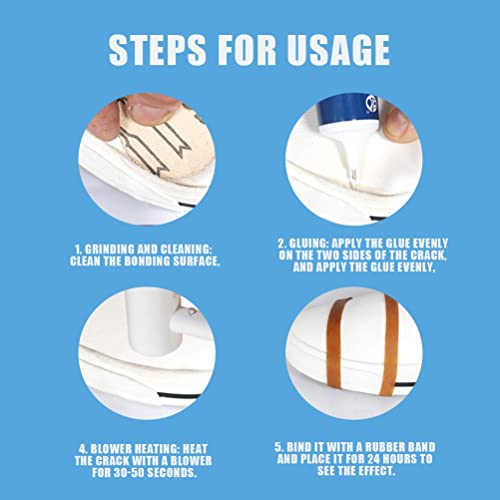 [Come usare]: 1. Macinazione e pulizia: pulire la superficie adesiva. 2. Colla: applicare la colla uniformemente su entrambi i lati della crepa e la colla viene applicata uniformemente. 3. Riscaldamento dell'asciugacapelli: utilizzare un asciugacapelli per riscaldare le crepe per 30 gradi - 50 secondi. 4. Legalo con un elastico e lascialo per 24 ore per vedere l'effetto.