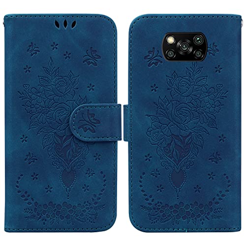 TIANCI Cover per Xiaomi Poco X3 Pro/Poco X3 NFC, Flip Cover in Pelle con Motivo a Rose e Farfalle, Case Antiurto di Alta Qualità Custodia per Xiaomi Poco X3 Pro/Poco X3 NFC