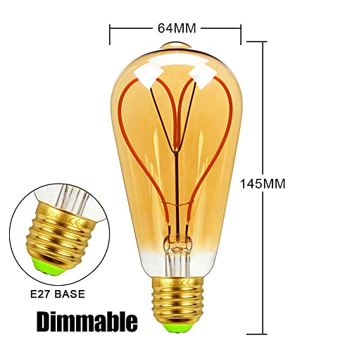 TIANFAN Confezione da 3 Lampadine a Led ST64 Lampadina Edison Lampadina Vintage 4W Dimmerabile 220/240V E27 Lampadina Edison Lampadina a Led Speciale Lampadina Decorativa Luce di Calore Glow Heart