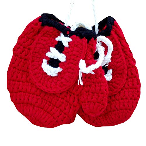 Tianhaik - Set di accessori per la fotografia per neonati e neonati, in maglia all'uncinetto, guanti da boxe per bambini da 0 a 3 mesi, colore: rosso