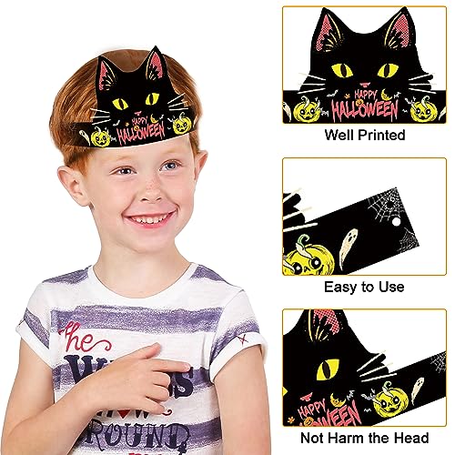Confezione Comprende:Ci sono 6 pezzi di cappelli di carta festa di Halloween in 6 disegni attraenti e 6 pezzi di corde bianche, che hanno un design unico con elementi di Halloween, come zucche, pipistrelli, ragni e fantasmi. La fascia di Halloween è adatta a ragazzi e ragazze.