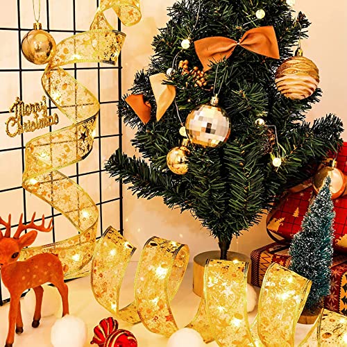TIANHOO Nastro Luminoso per Albero di Natale, 5M/16.4ft 50 LED Luci Natalizie a Nastro Brillante a batteria Luci di Stringa di Fata di Natale per Decorazione Natalizia Feste Matrimonio Coperto (Oro)