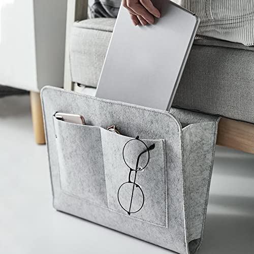 TIANNAIT Borsa portaoggetti da comodino in feltro, organizer da appendere, tasche multiple, per riviste assortite, libri, telefono cellulare, telecomando (grigio)