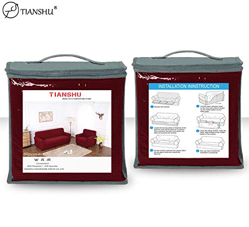TIANSHU Fodera per Poltrona, Copri Poltrona 1 Posti Elasticizzato Jacquard Antiscivolo Copertura Poltrona Fodere Copridivani Contiene 1 copridivano e 1 coprisedile Divano (1 Posti, Bordeaux)