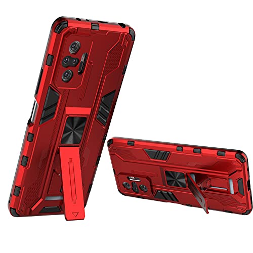 Tianyan Cover Xiaomi Redmi Note 10 Pro,Dual Layer Armor Antiurto [Morbida Silicone TPU e PC dura Anti-Graffio 2in 1 Cover] con Supporto Nascosto Protezione Custodia per Xiaomi Redmi Note 10 Pro,rosso