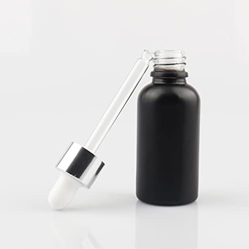 TIANZD 6 Pezzi 30 ml Bottiglie Contagocce in Vetro Nero opaco con Pipetta Tappo a Vite Argento per Oli Essenziali, Contenitori di Aromaterapia, Cosmetici