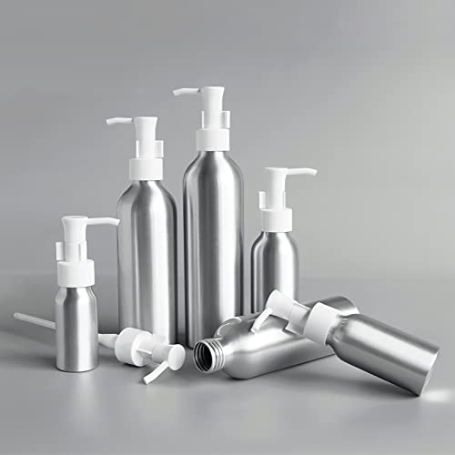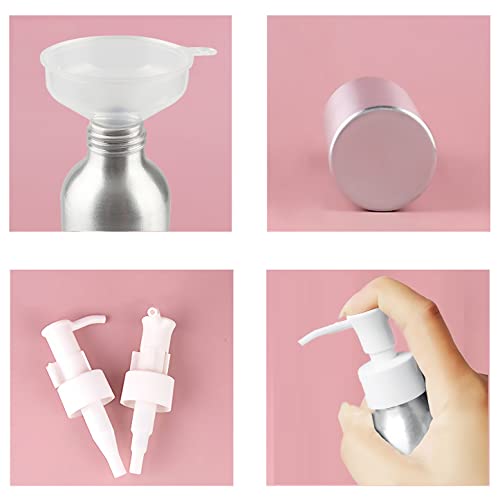 ✈【PACCHETTO INCLUSO】 - 3 Pezzi 500 ml Bottiglie dosatori argento Vuote in alluminio con Pompa Bianca, 1 pezzo imbuto