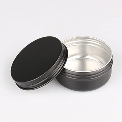 TIANZD 10 Pezzi 50 ml Nero Barattoli di alluminio Scatola Alluminio a Vite Vasetti Rotondo per DIY Candele Cosmetico Caramella Gadget Balsamo Labbra con 12 Etichette e 3 Cucchiaio