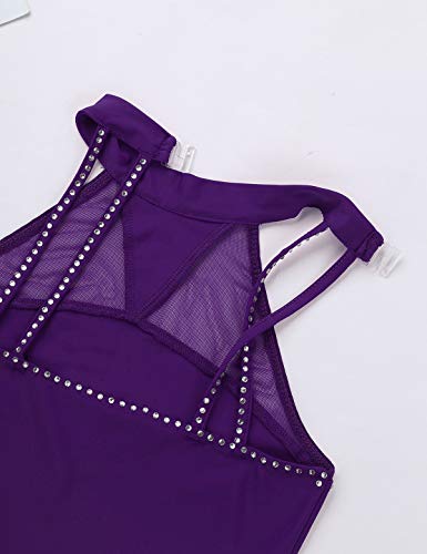 TiaoBug Abito da Pattinaggio Artistico Bambina Vestito da Balletto Leotard Vestito Pattinato Ballerina Pattinatrice Ragazza Body Danza Classica Allenamento 4-14 Anni Viola B 13-14 Anni
