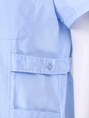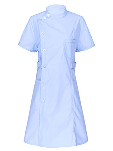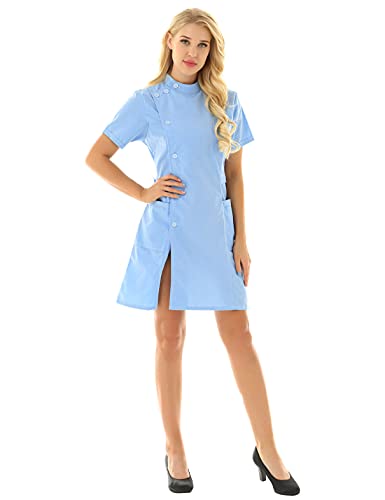 TiaoBug Camice Medico Infermiera Donna con Tasche Uniforme da Laboratorio Farmacia a Manica Lunga/Corta Vestito Medicale Cappotto per Studente Nurse Dottore Blu D M