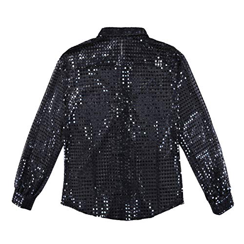 TiaoBug Camicia Disco Anni 70 Uomo Paillettes Camicia Classica Slim Fit Camicia da Ballo Danza Discoteca Maglietta Maniche Lunghe Camicietta Vest Crop Top Shirt Clubwear Nero M