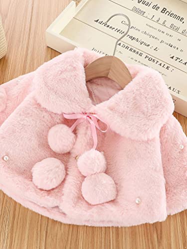 TiaoBug Cappotto da Neonate in Pelliccia Sintetica Mantello Adorabile Bimba Cappotto da Principessa Capispalla Giacca Calda Mantellina Poncho Abiti Invernali Battesimo Rosa 6-12 Mesi