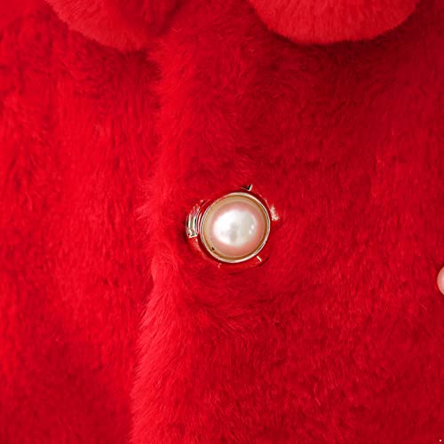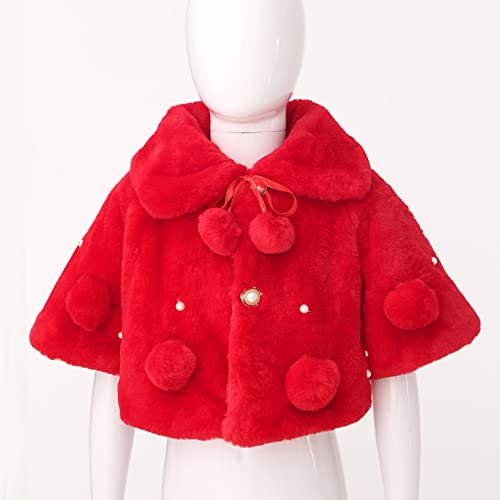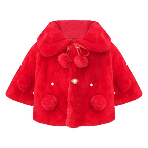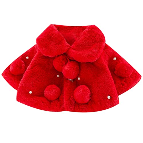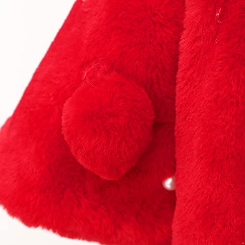 TiaoBug Cappotto da Neonate in Pelliccia Sintetica Mantello Adorabile Bimba Cappotto da Principessa Capispalla Giacca Calda Mantellina Poncho Abiti Invernali Battesimo Rosso 0-6 Mesi