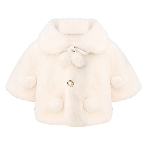 TiaoBug Cappotto da Neonate in Pelliccia Sintetica Mantello Adorabile Bimba Cappotto da Principessa Capispalla Giacca Calda Mantellina Poncho Abiti Invernali Battesimo Bianco 6-12 mesi