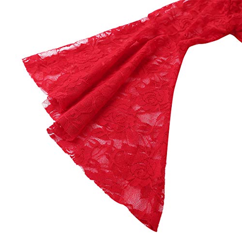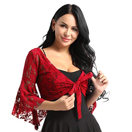 TiaoBug Cardigan Estivo Primaverile Donna Elegante Bolero Pizzo Floreale Coprispalle Aperto Top Danza del Ventre Crop Top da Ballo Shrug Giacca Corta per Abito da Sera Rosso Taglia Unica