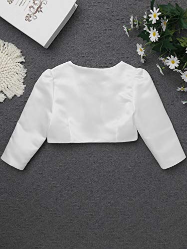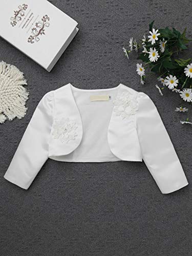 TiaoBug Coprispalle Cardigan Autunno Estivo per Bambina Principessa Bolero in Raso Senza/con Fiore Abito da Battesimo Cerimonia Festa Party Regalo di Compleanno Matrimonio Bianco E 9-10 Anni