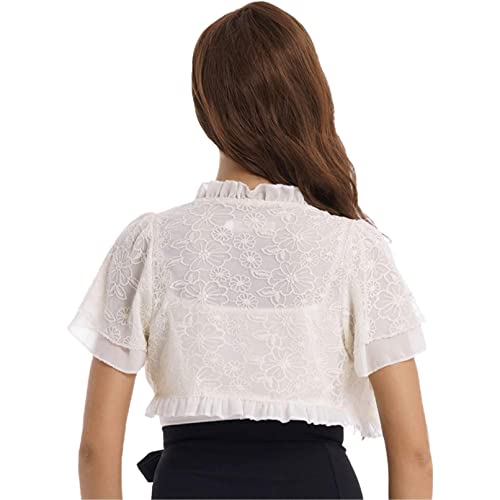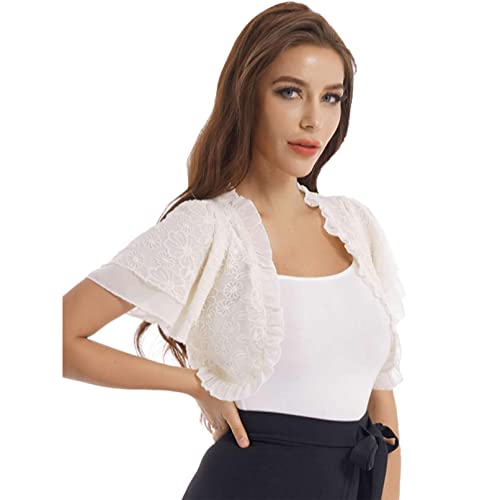 TiaoBug Coprispalle Donna Elegante Bolero Chiffon Manica Corta Cardigan Corto Estivo in Chiffon Leggero Shrug Aperto Davanti Giacca Shrug Leggero Scialle per Cerimonia Bianco S