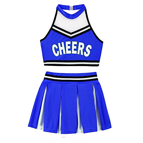 TiaoBug Costume da Cheer-Leader Bambina Crop Top Corto Scollo a V Gonna a Pieghe Uniforme da Cheerleading Cosplay Travestimenti Scuola Football Halloween Festa Carnevale Blu A 6 Anni
