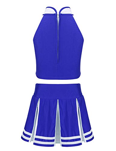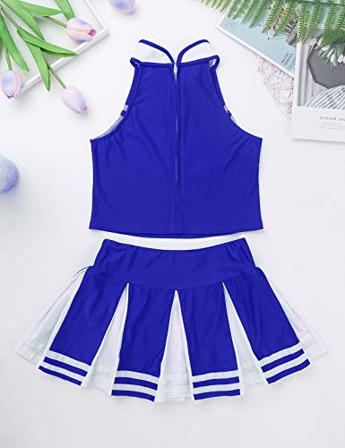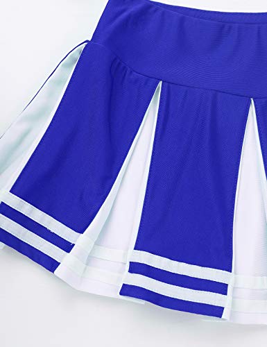 TiaoBug Costume Cheerleaders Ragazza Canotta Senza Maniche Girocollo con Mini Gonna a Pieghe Uniforme Scolastica Vestito da Cheer-leader Costume Carnevale Halloween Blu&Bianco 12 anni