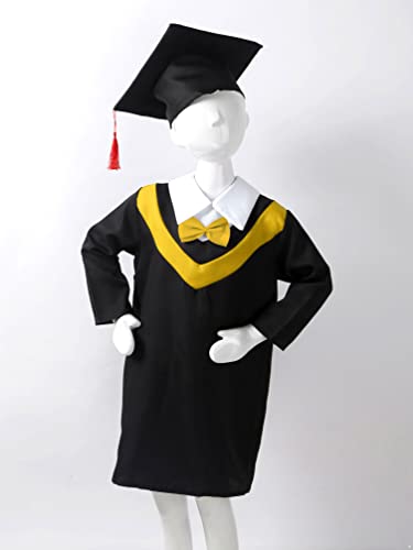 TiaoBug Costume Laureato Bambini Toga Abiti di Laurea Cappello con Nappa Laurea per Studenti di Scuola Elementare Media Linea Rossa/Gialla Costume Travestimento Festa Giallo 4-5 Anni