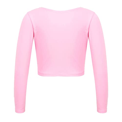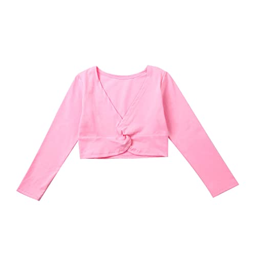 TiaoBug Top da Danza Classica Bambina Cardigan Maglioncino a Manica Lunga Coprispalla Incrocio Bolero da Ballo Top da Ginnastica Scaldacuore Ballerina Jazz Danza Moderna Rosa 12-14 Anni