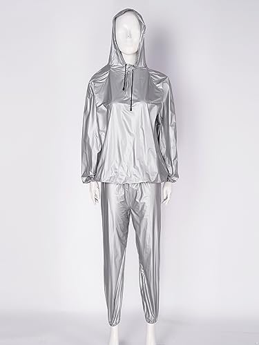 TiaoBug Maglietta di Sudorazione Manica Lunga per Donna con Pantaloni Lunghi Tuta Sauna Dimagrante Due Pezzi Tuta per Sudare Tuta Termica per Palestra Allenamento Yoga Corsa Argento A 3XL
