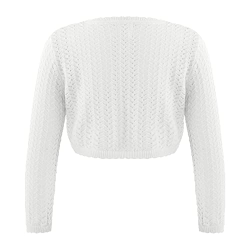 TiaoBug Neonata Bimba Bolero a Manica Lunga Cardigan Bambine Maglione Coprispalle in Cotone Abito da Battesimo Damigella d'Onore Cappotto Giacca 0-24 Mesi Bianco B 1-2 Anni