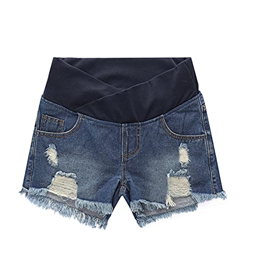 TiaoBug Pantaloncini Premaman Donna Cotone Jeans in maternità Pantaloncini da Salotto Shorts Premaman Donna Elasticizzati Pantaloni Regolabile Over Bump per la Gravidanza Blu E XXL