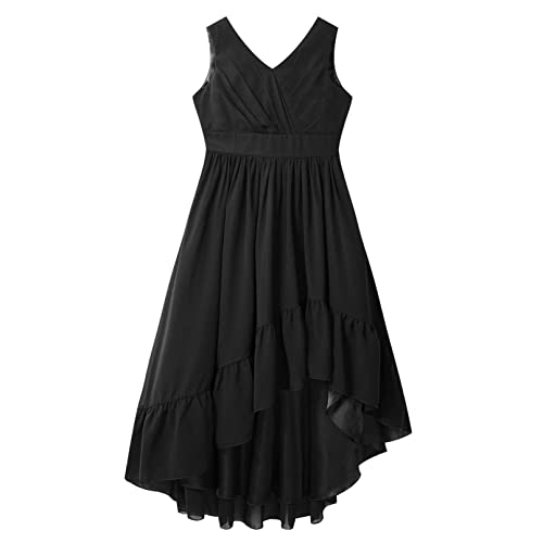 TiaoBug Vestito Bambina Elegante Principessa Abito da Cerimonia in Pizzo Floreale e Chiffon Vestito Lungo Senza Maniche Damigella d'Onore Matrimonio Sposa Feste Compleanno Nero A 11-12 Anni