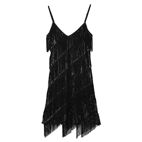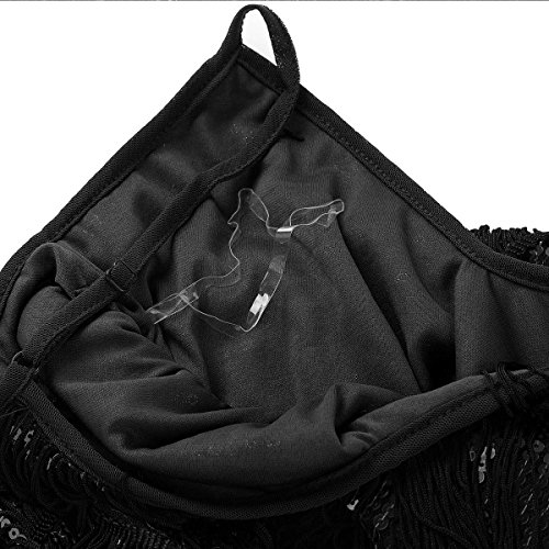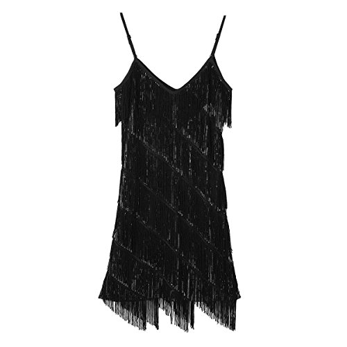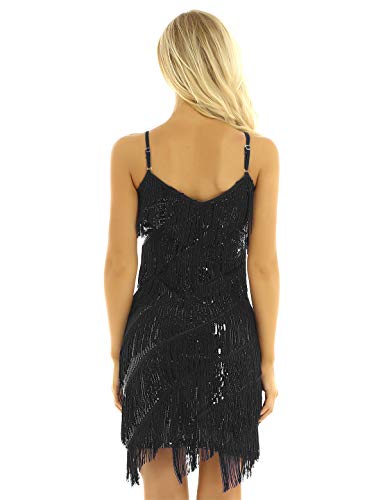 TiaoBug Vestito da Latino Donna Vestito da Tango Rumba Salsa Cha Samba con Paillettes Frange Lustrino Elastico Costume da Danza Classica Leotard Competizione Performance Nero Taglia Unica