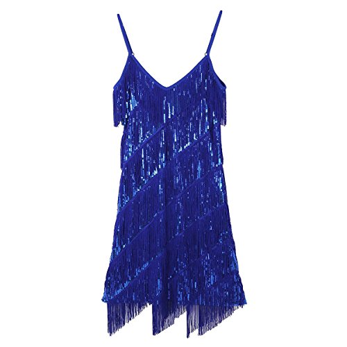 TiaoBug Vestito da Latino Donna Vestito da Tango Rumba Salsa Cha Samba con Paillettes Frange Lustrino Elastico Costume da Danza Classica Leotard Competizione Performance Blu Taglia Unica