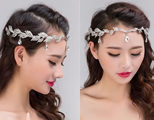 Tiara per Capelli con Strass, Nuziale Cerchietti Argento-Foglia Cristallo Cerchietti Strass Nozze Copricapo Accessori per Capelli da Sposa, per Spettacoli Matrimoni Balli di Fine Anno e Compleanni