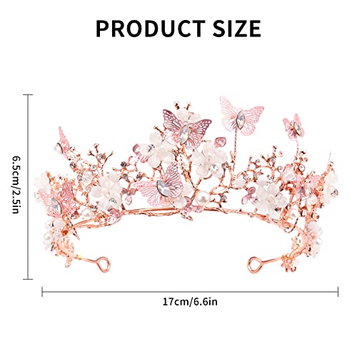 Tiara Corona Compleanno Fascia Cristallo Strass Tiara Perla Principessa Corona Fascia Capelli Vite Matrimonio Tiara Corona Nuziale Diadema Regina Accessori per Capelli Festa Torta Topper Oro Rosa